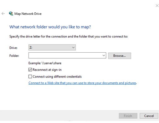 - In the Drive selection, pull down to the drive letter you are mapping: H or I