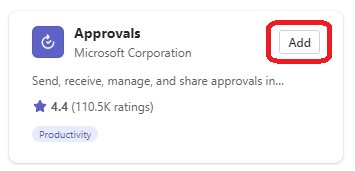 3. Locate the "Approvals" app that is from 'Microsoft Corporation' then choose Add.
