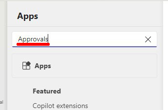 2. In the app search type "Approvals"