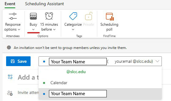 5. Add your name to the list of required attendees and make sure that you are the only one listed in this field.